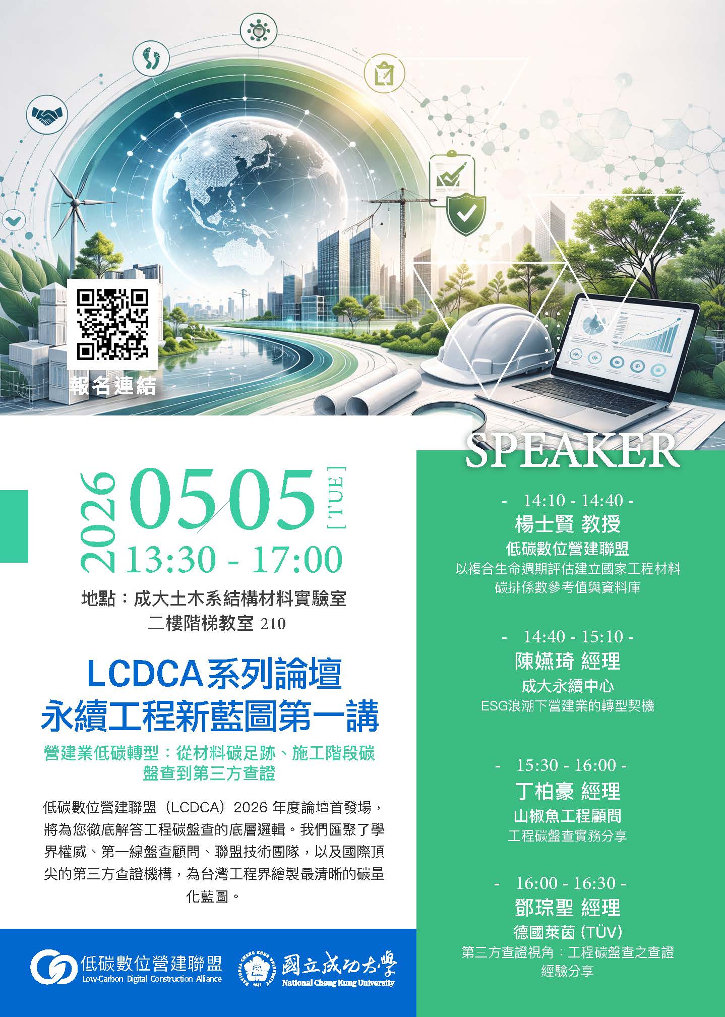 成功大學-LCDCA系列論壇永續工程新藍圖第一講